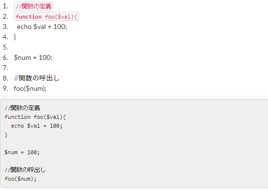 上が、コードで下がコードブロックです。